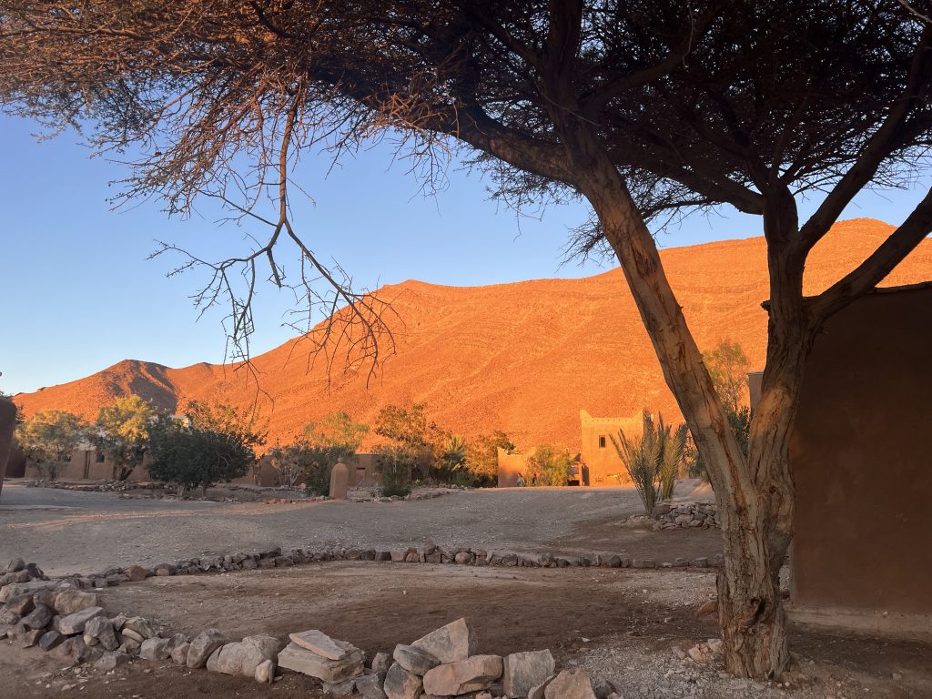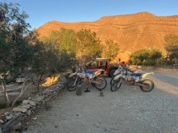 The cost of our stay at Borj Biramane was £8 per night for the pitch, with electricity. Alcohol was relatively expensive in Morocco, a bottle of Moroccan vin ordinaire was £16, a small can of beer was £2.80. Our evening meals cost £10 a head for a lovely salad (or soup) followed by a tagine with fresh bread and bottled water. There wasn’t a great deal of choice but the food was excellent, freshly cooked and home made. The alcohol almost doubled our restaurant bill!