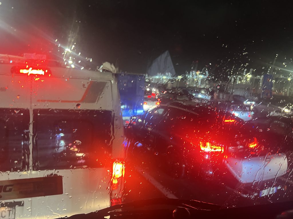 By the time we finally disembarked it was dark and raining heavily as we joined a dozen lanes of traffic feeding into six Customs lanes – everyone trying to barge ahead of the vehicle next to him – it was chaos. Our truck was bigger than most and Tony held his nerve in the foray, although there was a lot of horn blowing and rude gestures. Fortunately when our turn finally came to be checked by Customs we were waved through without being searched. The angry Frenchman just behind us, with whom we had been playing at dodgums for the past hour, was pulled over by Customs and had to empty the contents of his boot in the pouring rain – we felt so sorry for him!